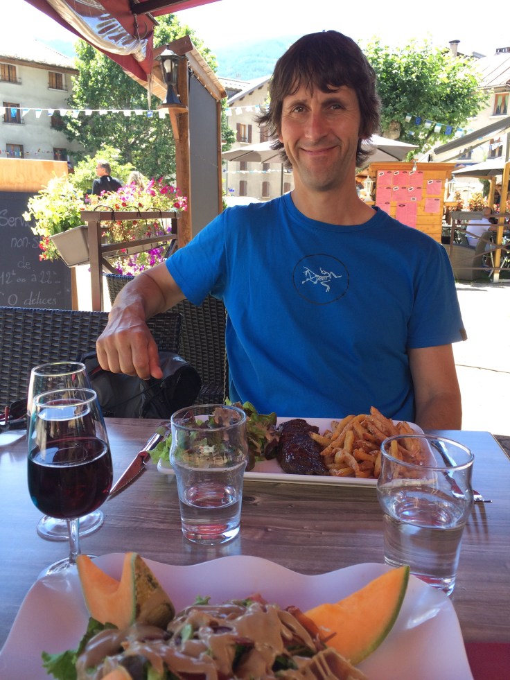 We showered and had breakfast… A fresh fruit smoothie and Nespresso coffee as we’ve brought the appliances from home! Then we cycled into Guillestre to see the weekly market. There were lots of stalls selling all types of produce, from food to jewellery and crafts to kitchenware. We also visited tourist information to get details of walks, cycle routes and buses, which we’ll need to get to and from our trek. It was also useful to use their decent wifi!