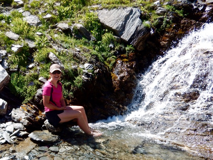 After a second lunch by a waterfall, we set off back to the refuge, before I got too sunburnt… I’d forgotten to put sun protection cream on yesterday and was a bit pink.