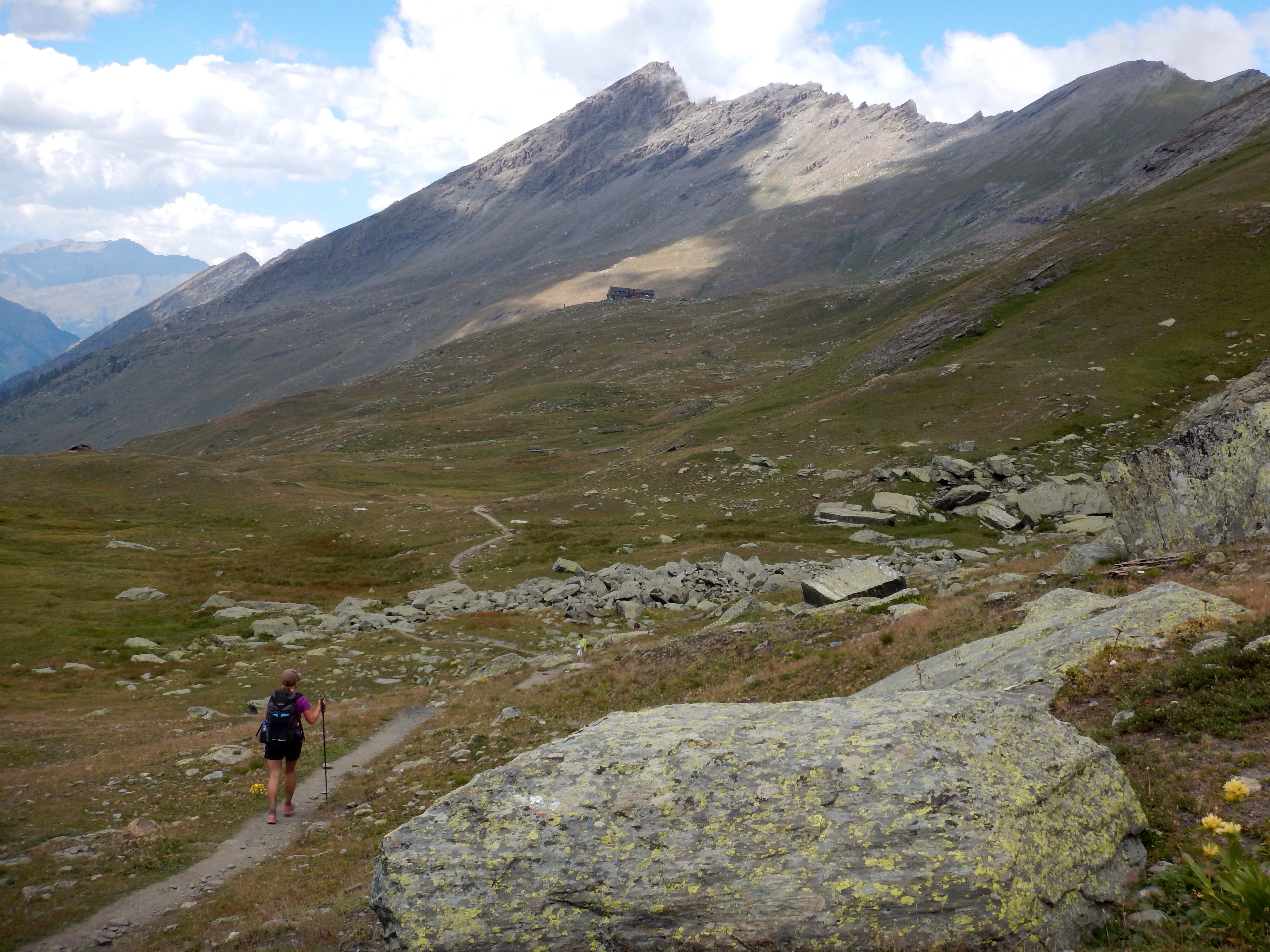 Nevertheless, we soon reached the village and began our ascent. The route climbed steadily at first, following a river and through high alpine pastures, before becoming steeper and zigzagging through scree.