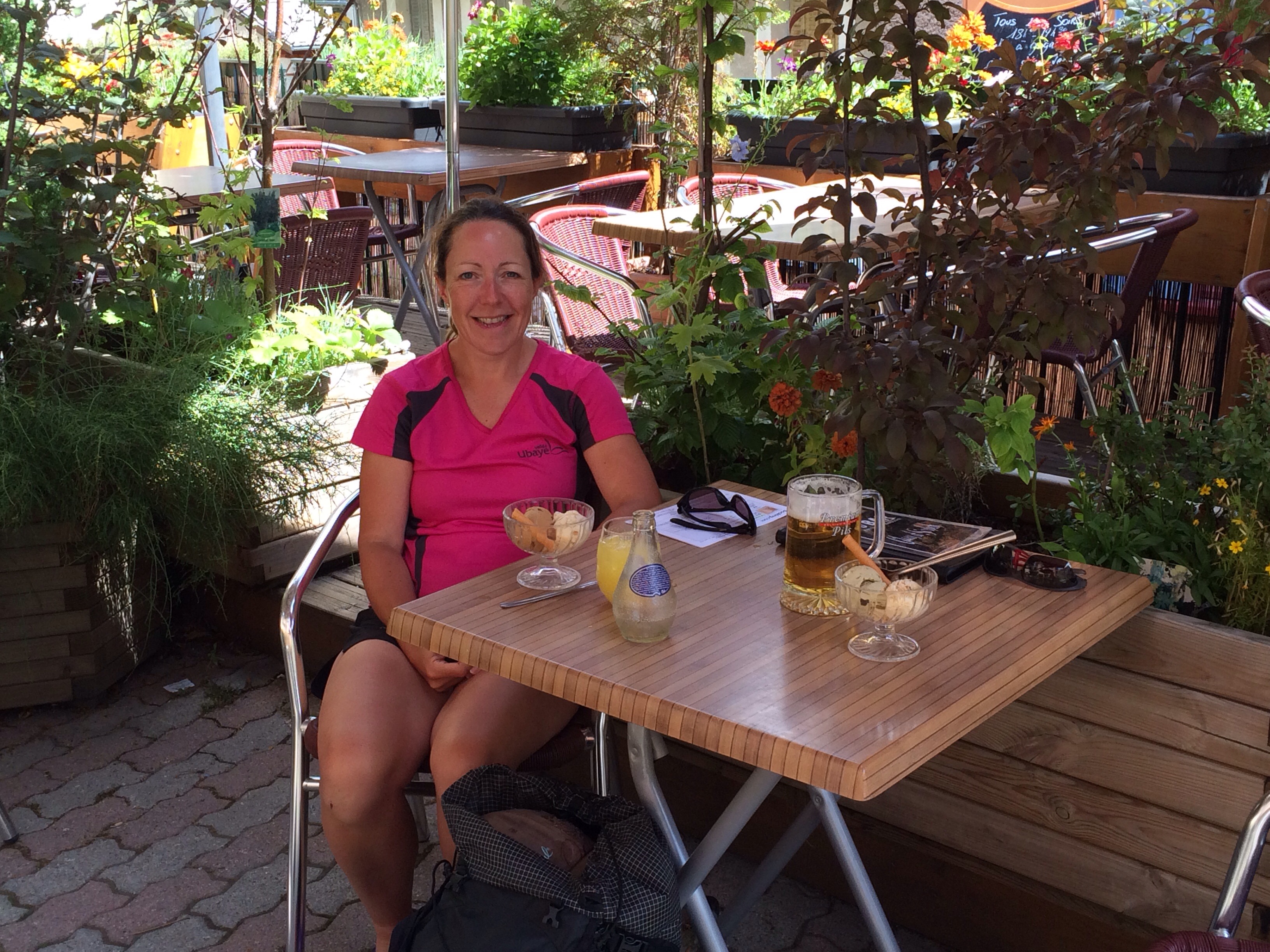 We stopped for a while, eating our lunch and relaxing in the sunshine because there was no rush to get to the Gite because we’d picked a shorter route. I went for a paddle but the water was too cold for a swim, particularly as there was a cool breeze.