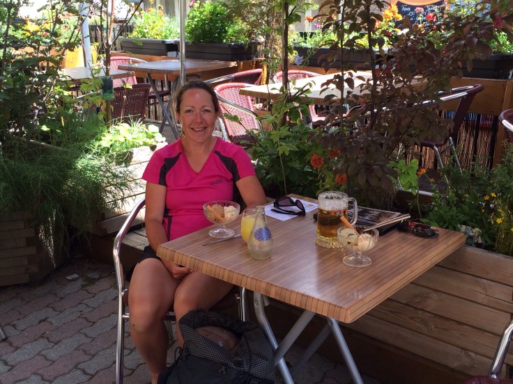 We sampled the drinks in three of the town’s bars to celebrate the end of the walk, and even talked about buying the Gite that we were staying in as it was for sale! Yak Avenir was very tastefully decorated and very comfortable. We had a room of our own, with an ensuite bathroom. John got rather excited about being able to leave his toiletries in the bathroom and being able to lock the bedroom door!