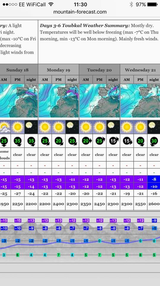 We both managed to get a half day today so we could head down to Gatwick after lunch. We’d finished packing yesterday evening, and I tidied the house first thing, before trying to concentrate on work. When Paul posted a screen shot of the weather on Mount Toubkal, I gave up. It’s very exciting… the forecast is for sunshine, little wind and temperatures well below freezing… perfect!