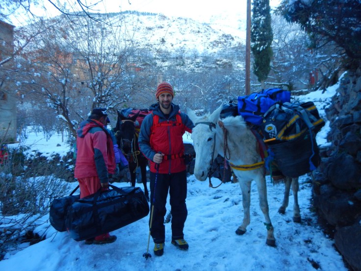 As the snow on the paths wasn’t too bad, we did have donkeys to carry our kit bags half way, then the porters would carry them the rest of the way. Rather them than me!