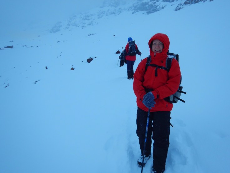 Once we reached about 2800m after about 7 hours of walking, it was snowing quite heavily and it was very difficult to see the path with the flat light.