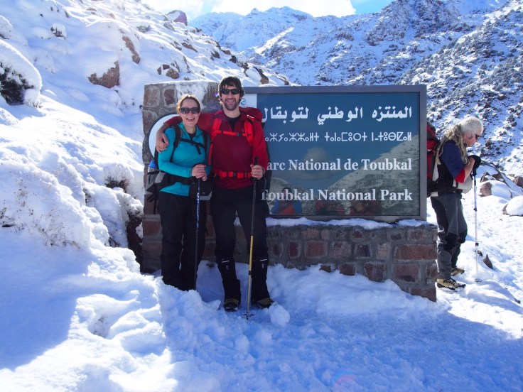 By now the sun was quite high and it was very warm so we all shed a couple of layers. Then we posed for photos at the entrance to the Toubkal National Park.