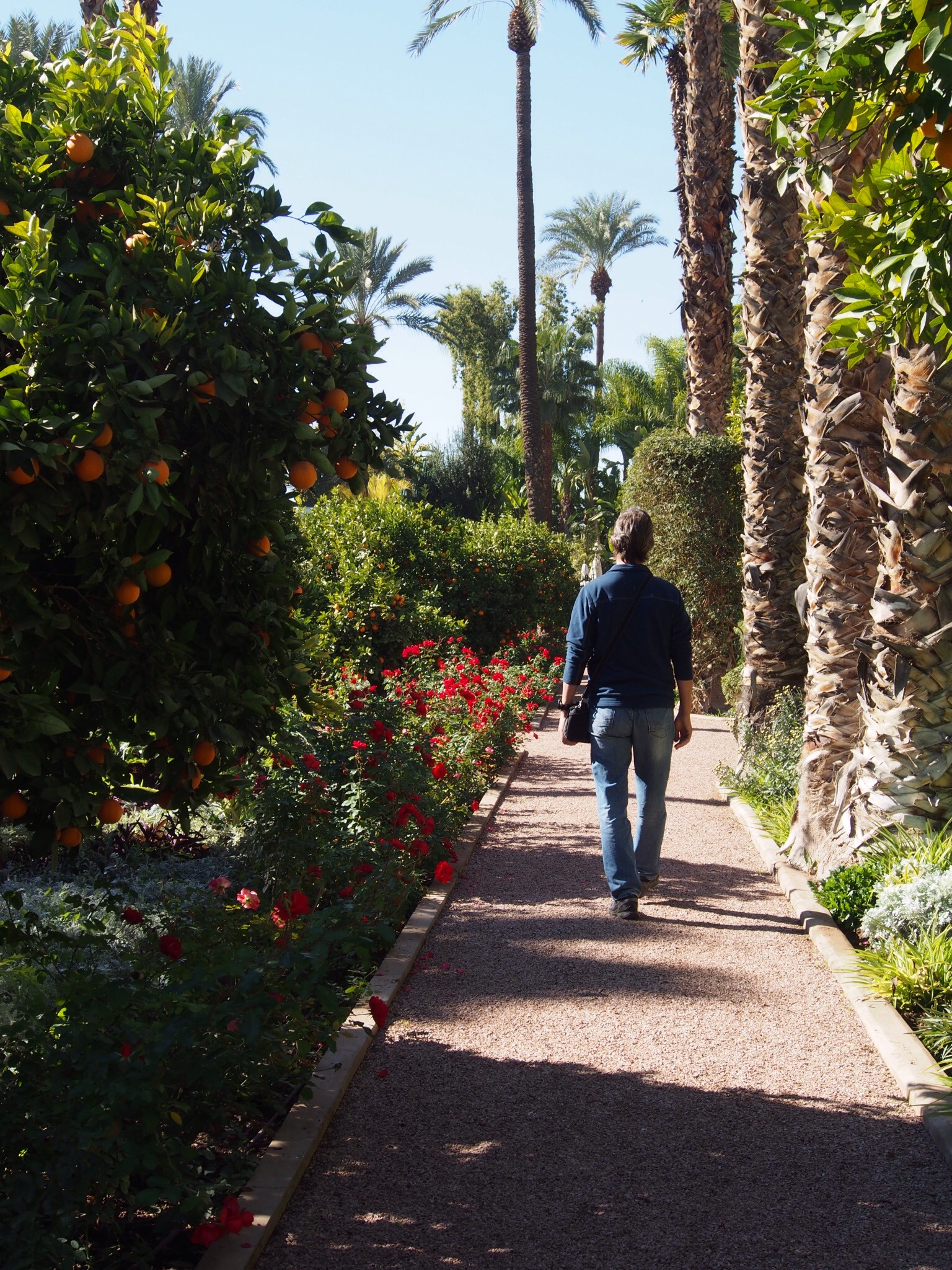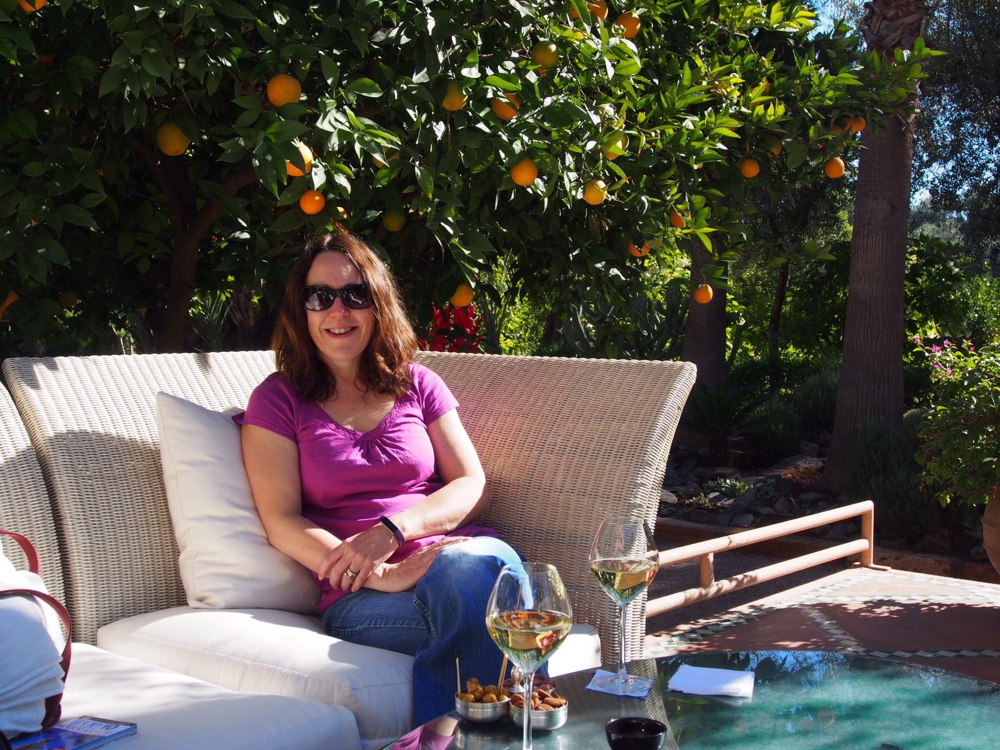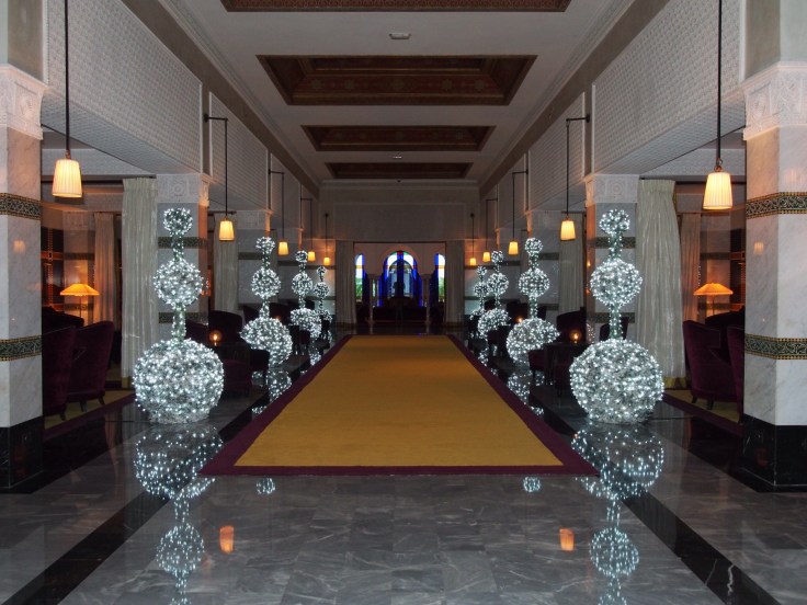 We then sat and debated what to do next, deciding on the Mamounia Hotel, a posh hotel where the rich and famous stay, which has lovely gardens and where the guidebook suggested was good for lunch. The taxi dropped us off outside and, thankfully, we were shown in, even though we’re wearing our tatty jeans!