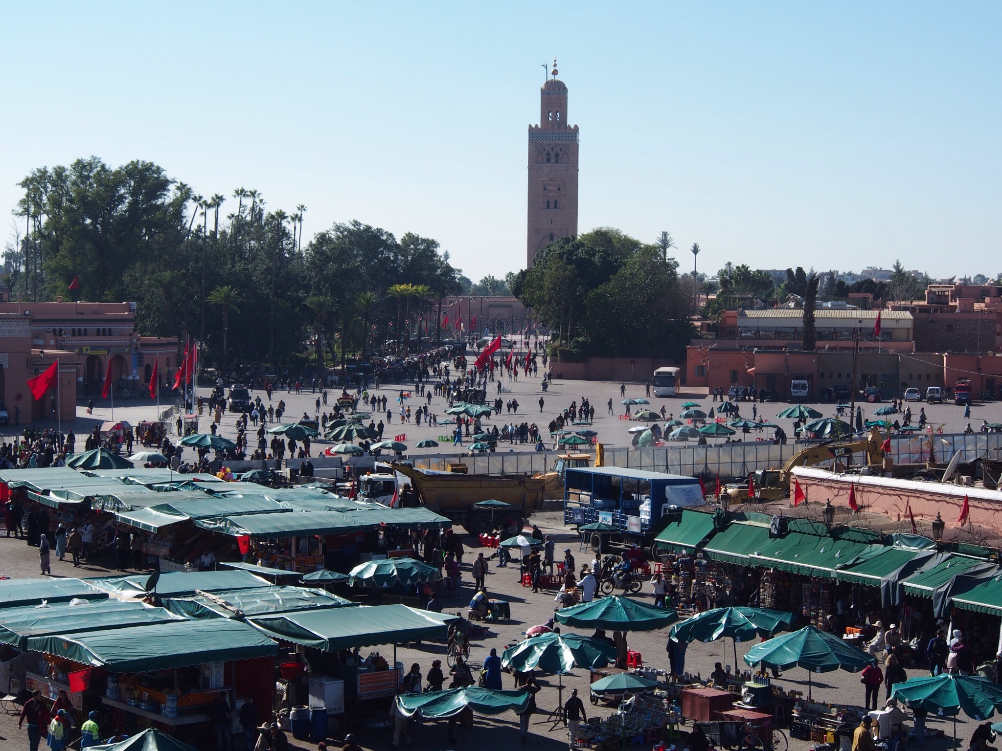 We then walked back into town for some lunch, somewhere cheaper… A rooftop cafe overlooking the market of Jemaa El Fna, from where we could watch the stalls and the acrobats. I love people watching!
