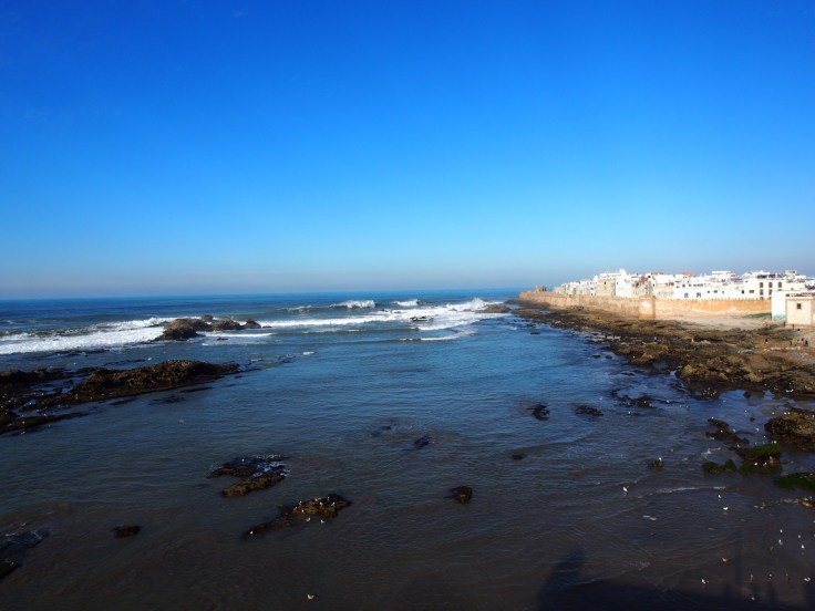 Today we had a 2 and a half hour journey to the Atlantic coast to visit the pretty seaside town of Essaouira, with its port, ramparts, beach and medina. After a lovely breakfast of pancakes, fresh coffee and orange juice, our driver picked us up at 9 and we set off through the chaotic roads of Marrakech.