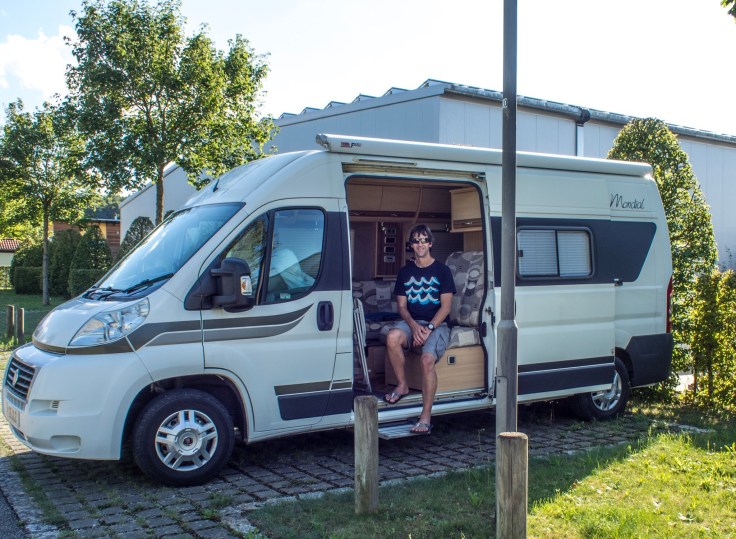 It rained most of the way but the sun is now shining. We've stopped by a small lake between Stuttgart and Munich, to 'wild camp' at a place called Zusmarshausen. Now for a beer and something to eat. Then maybe an episode or 2 of Breaking Bad (our binge watch for this trip!) in bed, and an early night.
