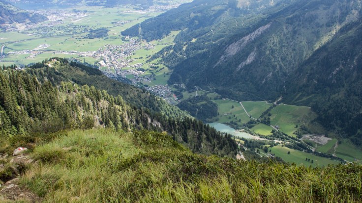 After this, the path dropped very steeply to the valley and Klammsee lake below, not far from our campsite on the edge of Kaprun. It was hot and sticky now, and the descent was relentless, so I was pleased to reach the bottom. The run was only around 15k with 500m of ascent but I found it hard work, probably because of the altitude, the heat and the difficult mountain terrain.