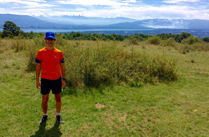 The downside of the sunshine… and I’m not complaining… is that it was very hot for running. After finishing our housework (or vanwork?!) we ran from the campsite, along the lanes, then steeply up through the forest to emerge on top of Mont Mourex (755m). The views over Geneva towards snow-capped Mont Blanc were beautiful, although a bit hazy. I found the run tough but, having seen the stats on Strava, there was a reasonable amount of ascent for the distance (340m in 13k) and it was very hot when we weren’t in the shade of the forest.