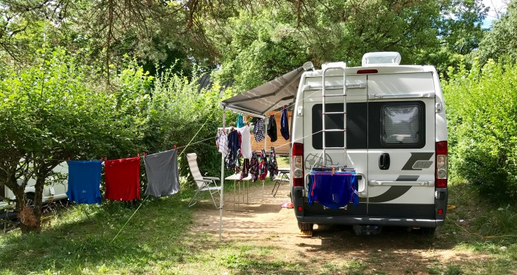 This morning, John put the washing on early while I washed up and swept the van. After breakfast, we hung the washing to dry in the sunshine… beautiful sunshine at last!