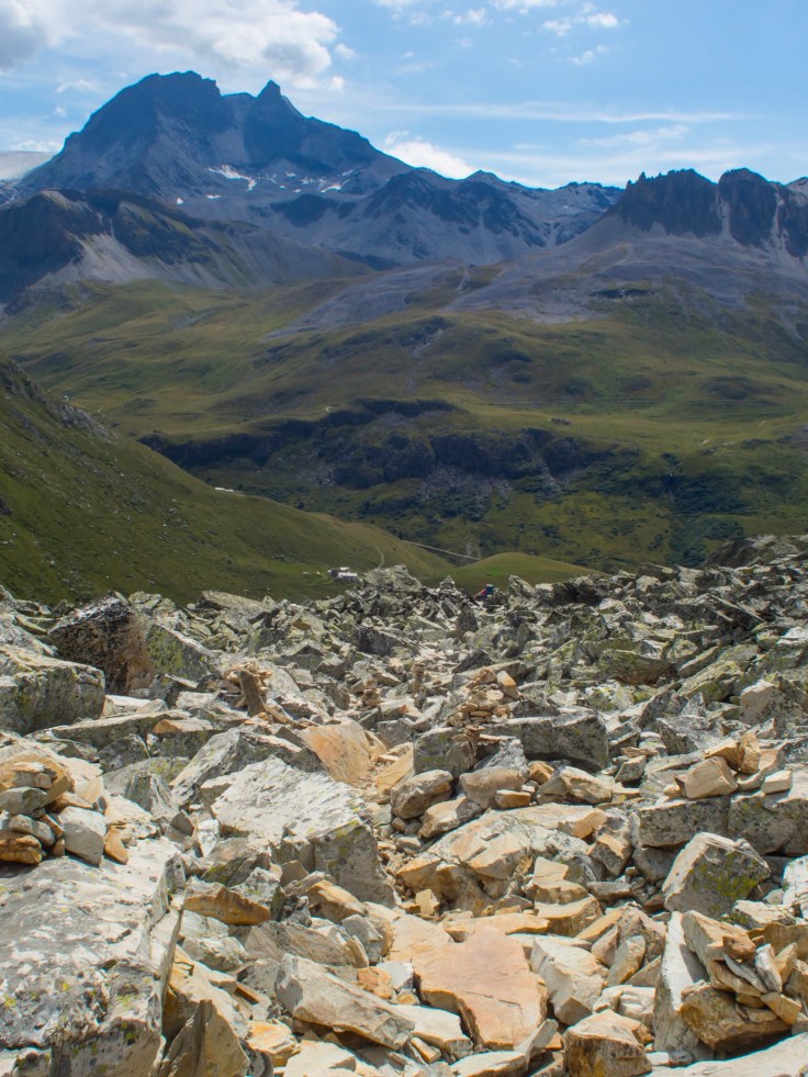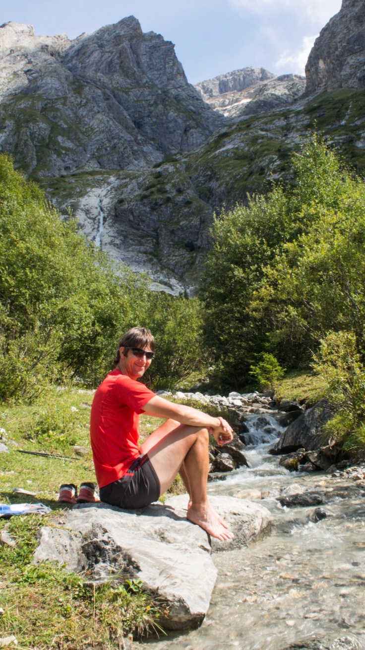 We chose the longer, quieter path to Pralognan, but it was still very busy. Having been in the mountains for 4 days, and not seeing anyone for hours at a time, this was a shock to the system. Using our poles for balance, we dashed down the steep, rocky path, skipping past people moving more slowly, trying not to slip on the well-worn, shiny rocks. It was a 1100m descent from the refuge to the town… hard on the knees!