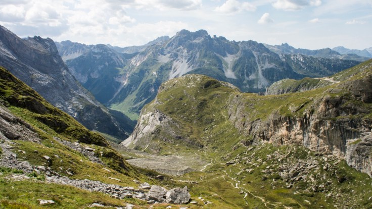 After stopping for yet another snack, we turned into another valley. The path here was difficult in places, uphill over boulders and scree. At one point, the boulders either side of the path were higher than me. We had to watch out for the cairns marking the best route.