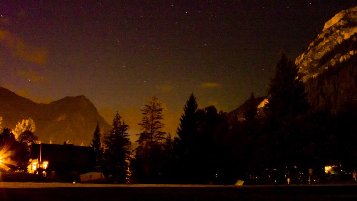 Having dinner in the village, we were pleased to see the Dutch couple who we’d said goodbye to at the refuge. They were surprised to see us thinking we were staying up there! After dinner, I attempted some pictures of the starry sky. This is the best I managed because the campsite is surrounded by mountains on all the other sides, and it was difficult to find something high up to focus on. I’m quite pleased with this one though.