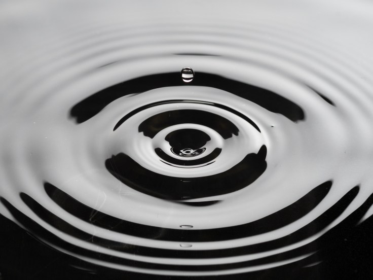 Next I photographed the water droplet. A plastic bag with a pinhole in it was suspended above a bowl of water, producing a slow but steady fall of water droplets. Off camera flash was used to light the image and I manually adjusted the settings on my camera so that the water droplet would be sharp against a blurred background. Someone held the tip of a pen where the water droplet would land so I could focus on it. A coloured background was used for the image below, whereas a white background was used for the image at the top of the page. It took lots of shots to get some images with the water droplets in exactly the right place!