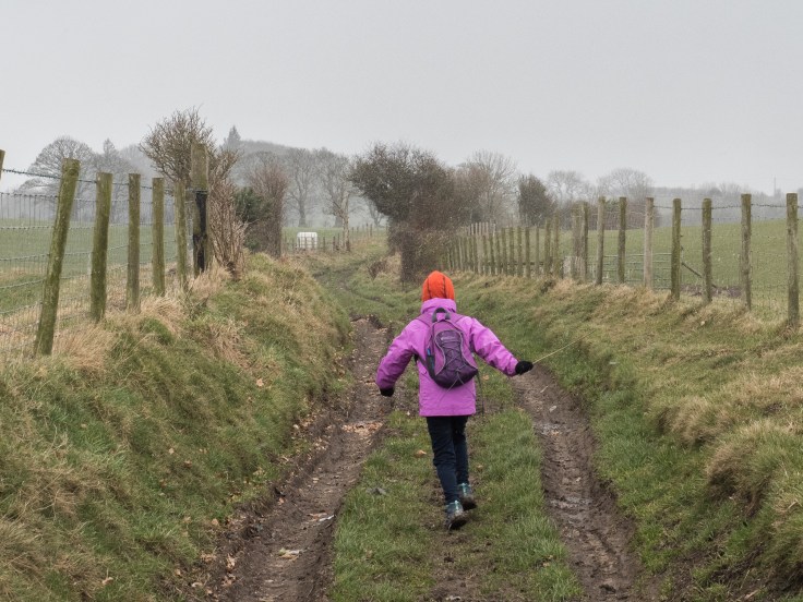 I had a look at the website and found a series of 21 caches around Llanasa, which were hidden by our friends Mike and Gail, Team Marzipan, who we met through caching. Mike and Gail have since introduced us to hashing, juggling, unicycling and many other fun things. Their caches are always good ones… a variety of containers, well maintained, with good descriptions and clues to help if you’re struggling to find them. In this series the caches were all placed only short distances apart, which is great when you’re with a small child who needs distracting on a long walk… particularly on a long walk in bitterly cold wind and snow flurries, which is what Daisy had to cope with yesterday.