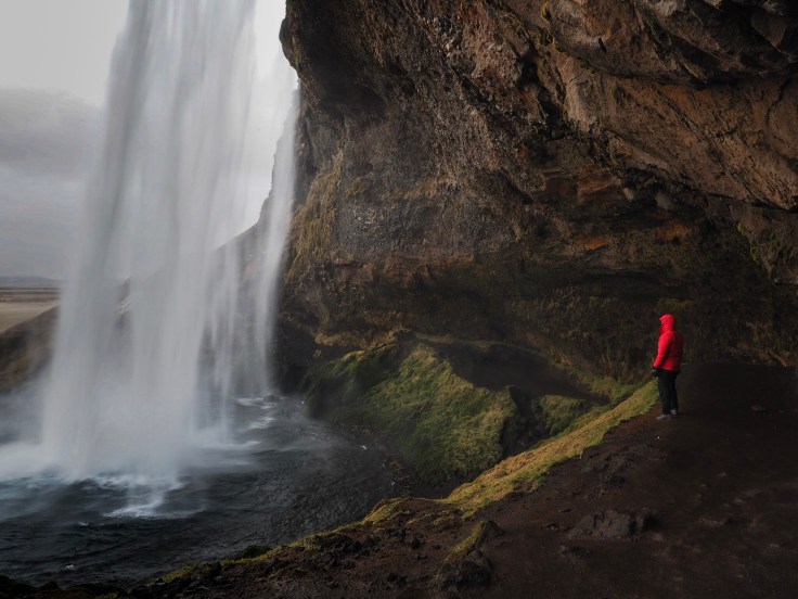 I woke really early again, with my brain buzzing about our plans for the day ahead, moving to our next Airbnb and visiting various places along the way. I felt much better, and the gale force winds had dropped so I was itching to get going. Luckily John was happy to get up too, hoping to beat the crowds. We grabbed breakfast, dumped our bags in the car, checked the Airbnb was clean and tidy and set off not long after 7 o’clock. Our first stop was Seljalandsfoss, a waterfall we could walk behind. When we arrived there were few people there and we had the space behind the falls to ourselves for a while.