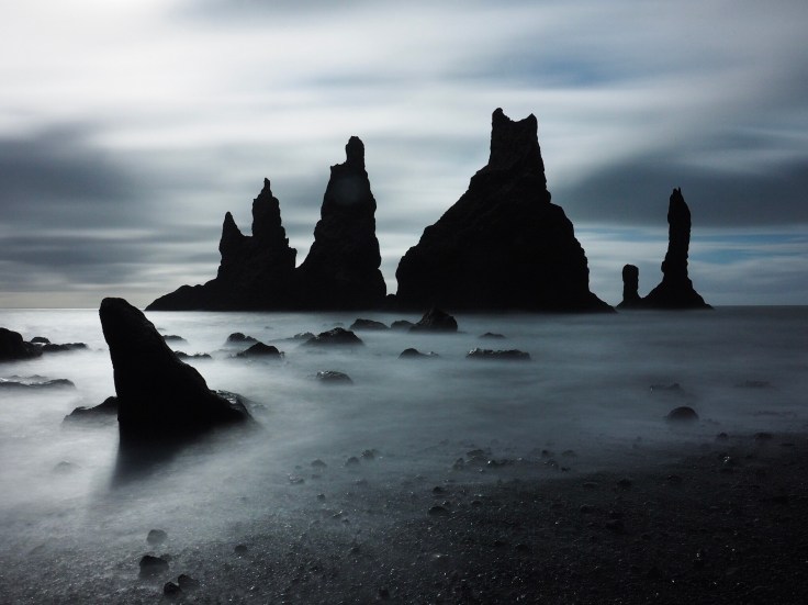 Back in the car again, we set off to Reynisdrangar, where basalt sea stacks can be found off a stunning beach with black sand. Apparently, legend says that the stacks originated when 2 trolls tried unsuccessfully to drag a ship with 3 masts to land, which became became needles of rock when daylight arrived.