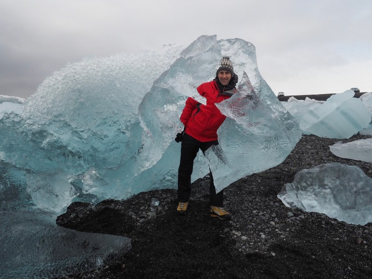 I noticed John had vanished so I went to catch him up. He was exploring the icebergs on the beach, and loving it, shouting me over so he could show me everything. The place definitely exceeded our expectations!