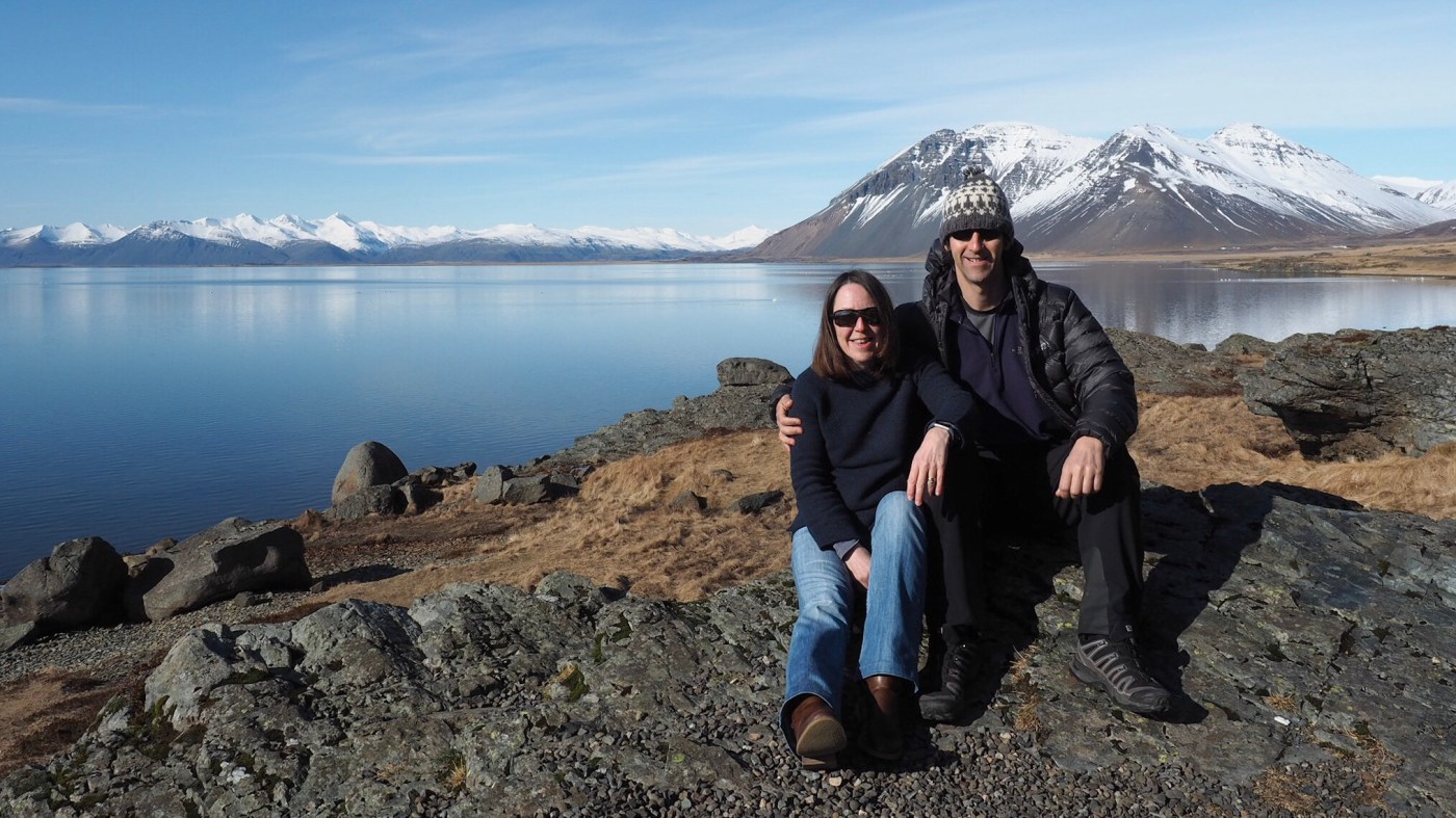 The landscape has changed as we’ve travelled, from being flat where we were staying and becoming hillier and snowier, but always beautiful. Often there’s been nowhere to stop beside the road to take photos, even with a 4 wheel drive car, and spots have to be chosen carefully to avoid getting stuck. As we wound around the stunning fjords on the south east coast we were looking out for a petrol station and a nice cafe for lunch. We found the first in a village where we spotted these egg sculptures, but all the cafes along our route were closed. Thank goodness for emergency bananas and cookies!