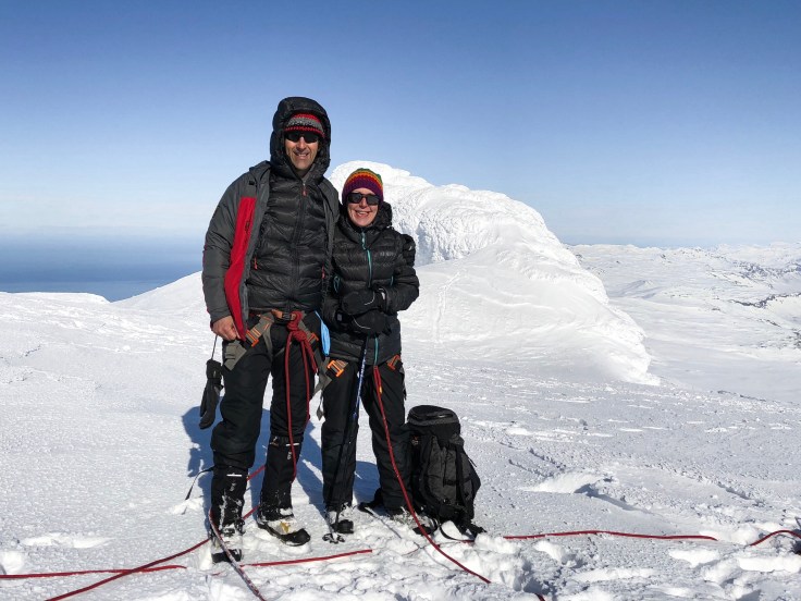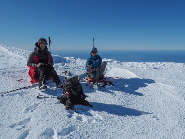 Finally, after over 5 hours climbing, we made it! It was freezing at the top… Robbie said minus 11. We pulled our thick coast hats and gloves on while we had something to eat, but we still had painful fingers and toes within about 10 minutes so we didn’t hang around too long.