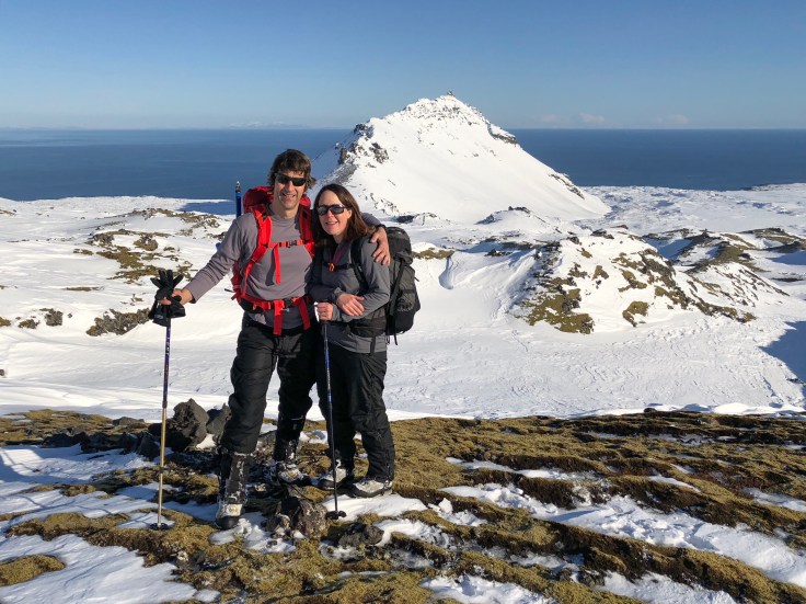 We’ve had an exhausting day, firstly because we were up a bit late because, I’m very excited to say, the Northern lights finally showed up 👍 Secondly, our hike up the 1446m Snæfellsjökull volcano was far tougher than we expected because of deep snow, and took all day.