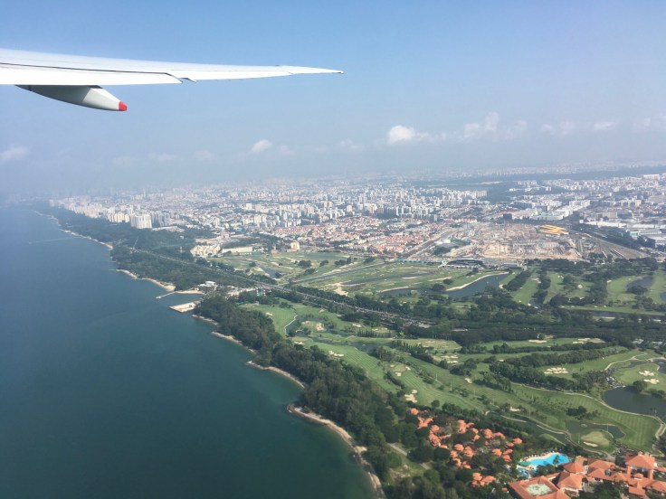 My overwhelming feeling is of having lost 2 days. We’ve arrived in Sydney on Tuesday evening having left home early Monday and it feels as though the world has just kept turning around us while we were in some sort of weird time zone in the sky. We saw the sunrise over Singapore and we saw it set as we flew into Sydney, and I know where I am but I can’t quite believe it. It doesn’t feel real and I’m having times where I feel quite spaced out.