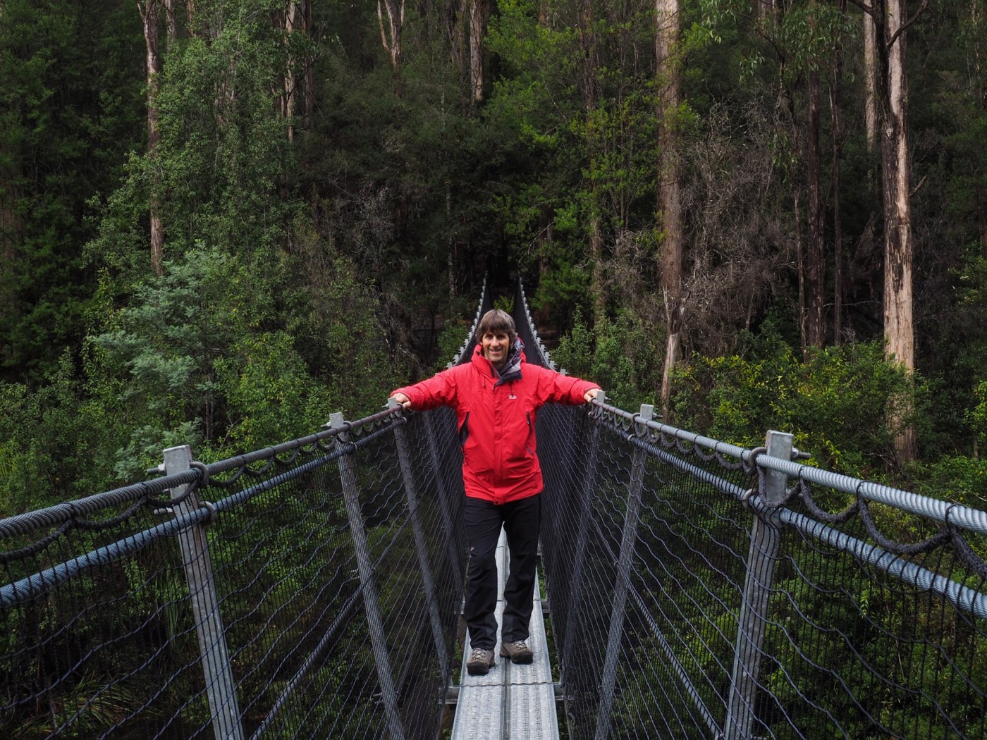 After this, we did the Swinging Bridges Walk, which is a 3 kilometre track that crosses the Huon and Picton rivers. From the confluence of the rivers, in the distance, we could see the cantilever of the Airwalk, poking out above the river. It was a very enjoyable walk. I was glad we had the 2 bridges to ourselves though… They bounced quite a lot when we walked on them!