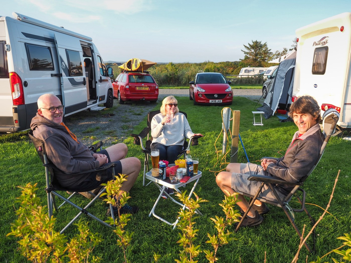 By the time we’d showered and sorted out the kit, the sun was shining, so we sat outside for drinks and nibbles. Then, when the sun dropped, we had dinner in Bertie BoxLife, which worked very well. The new van is definitely feeling like home from home now.