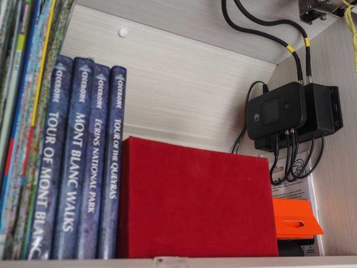 We’ve also had 4G mobile broadband fitted to Bertie today. We bought the kit from Motorhome WiFi and are very grateful for their help and advice. Bertie now has a 4g antenna on his roof, which provides 4G that is five times stronger than mobile phone 4G. There’s a wireless Huawei router in a cupboard in the lounge that we can connect up to 10 devices to. This means we can run both our phones and the iPad from it, without touching our usual data plans. After I’d explained what we needed, Adam at Motorhome WiFi recommended a Vodafone 30-day rolling data SIM so we have 50GB of data a month, which should be plenty and is only costing us £25 a month.