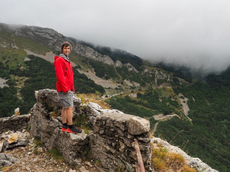 We than had a short walk up the hillside to see the valley from a different angle before heading off to see if we could do the hike we’d planned. However, back through the other side of the tunnel again, the mist was still low and, having checked out the area at the start of the walk, we decided to move on to where we’re staying for the night. We’re in a car park in the middle of nowhere, 6.5km up a steep single-track mountain road, with a few hairpin bends too. Luckily we didn’t meet anyone coming the other way but John was glad when we finally got here.