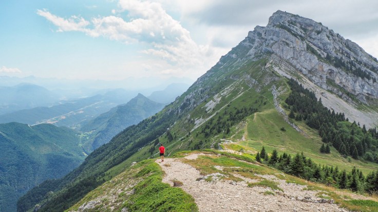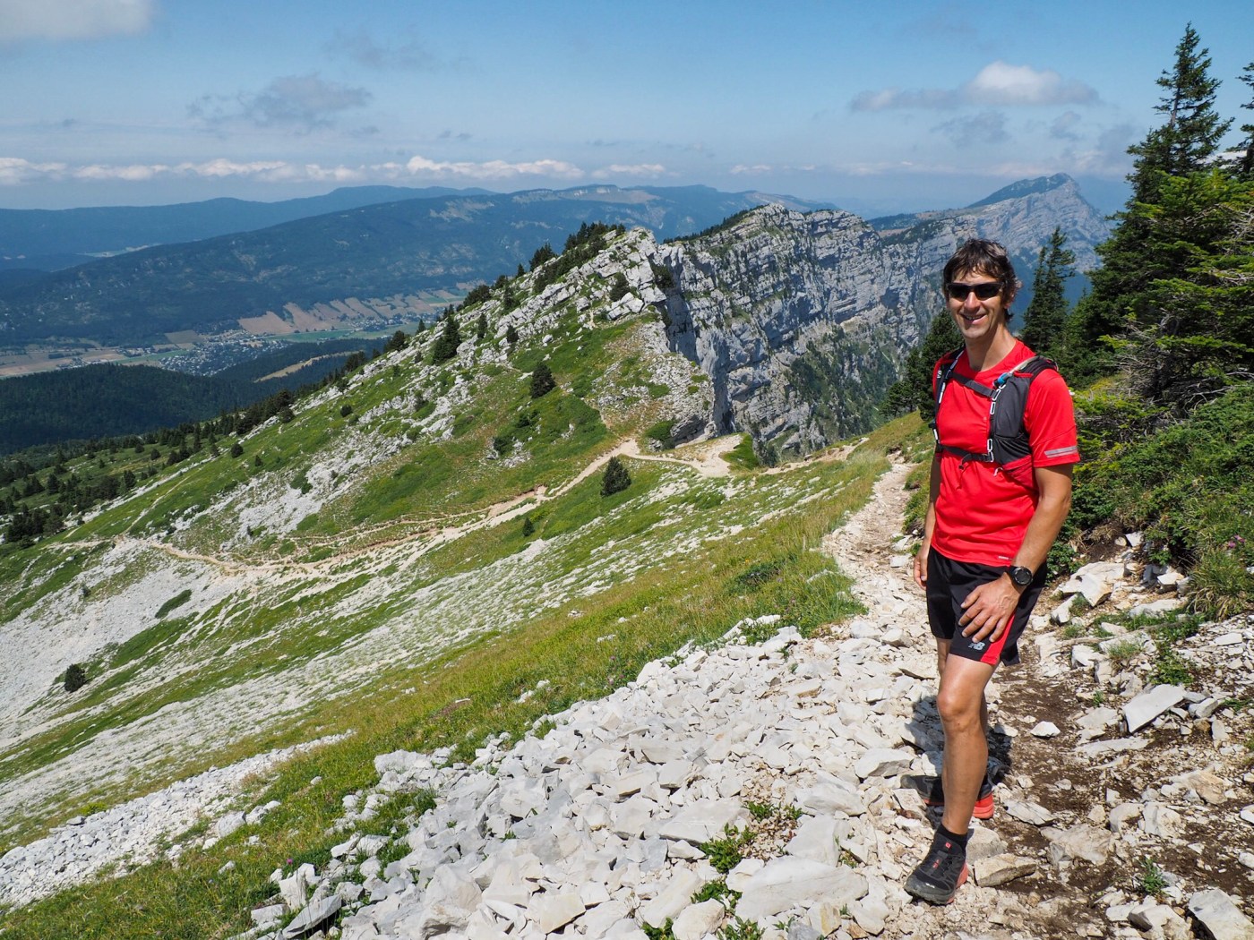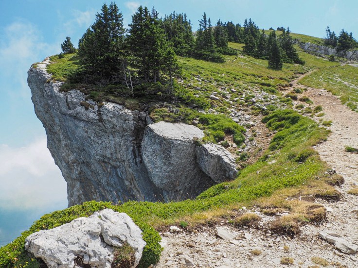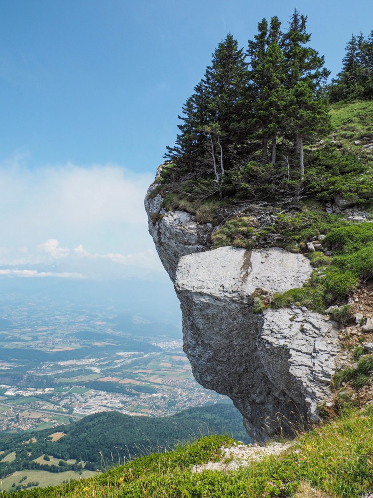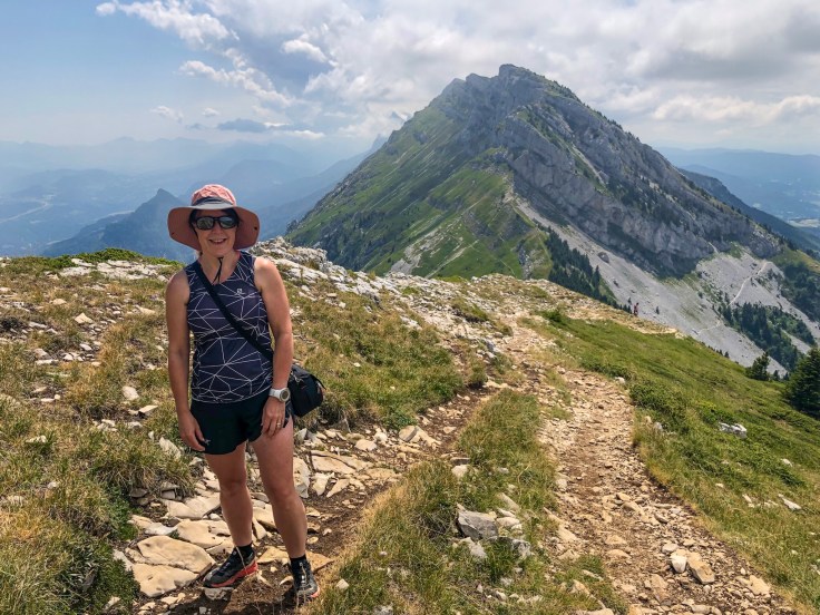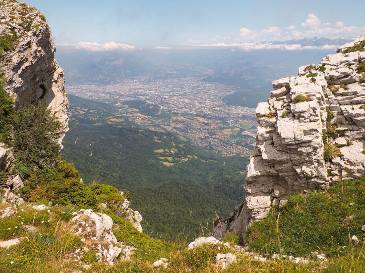 We spent some time watching a couple of birds of prey jousting in the air. Unfortunately, I didn’t get a good photo of them, and John hasn’t yet worked out what they were. Eventually we reached the first col, where I stopped to take photos of the views down the steep cliffs down the other side of the mountain, towards Grenoble. Stunning!