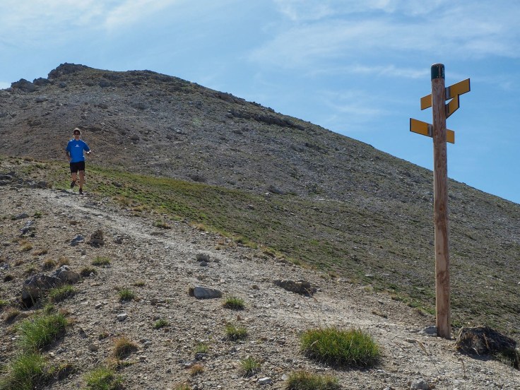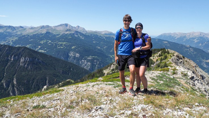 I sat and had my sandwich (delicious chicken and mayonnaise!) and enjoyed the views and the sunshine, while John ran up the nearby Pic d’Escrein, which at 2734m high was about 100m above the col. It was rather grey and rocky and didn’t look worth the effort to me, but he enjoyed it. Oh, to be that fit!