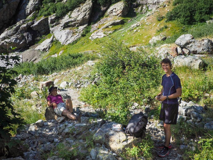 After about an hour and 20 minutes, we came to the path junction and had to make the decision, which refuge to visit. We decided to go for the higher one, Refuge du Pelvoux, which would take us to the highest point we’ve been on this trip, with a big 1200m ascent.