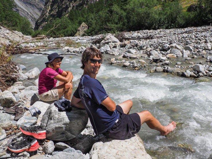 Back in the valley and close to the river again, we found a spot to soak our hot feet. The water was freezing, but lovely! Overall, the walk was about 16 kilometres long and took about 6 hours. Great training for our Tour du Mont Blanc trip, and it was nice to see another part of the Ecrins.