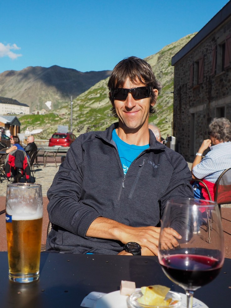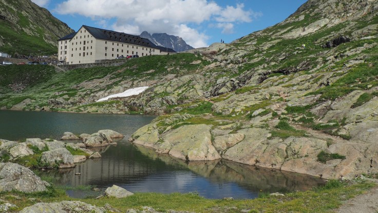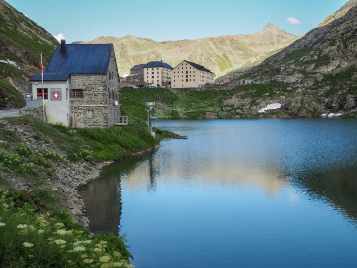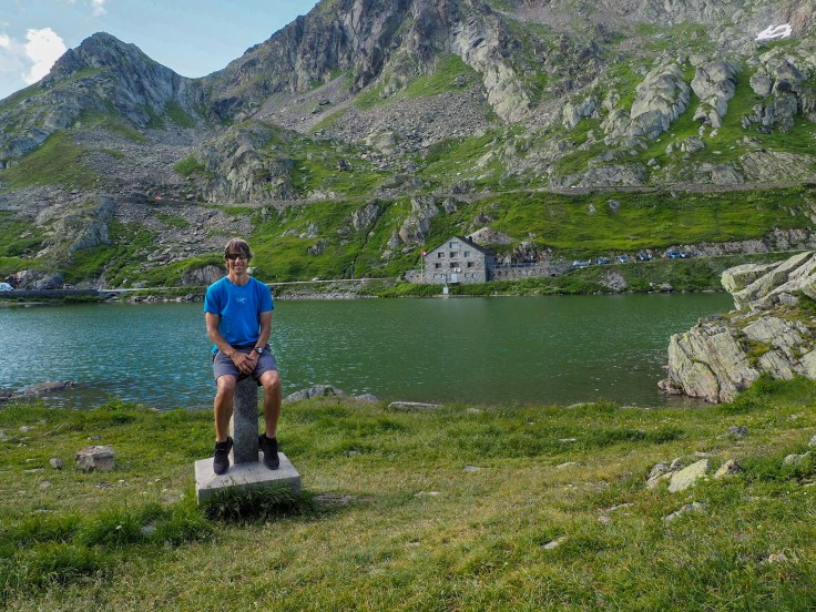 Now we’re at the Grand St Bernard Pass. Bertie and John did well to get up here, with a lot of the ascent needing first gear! We’ve had a wander to the viewpoints, and around the small lake. John sat with one buttock in Italy and one in Switzerland!