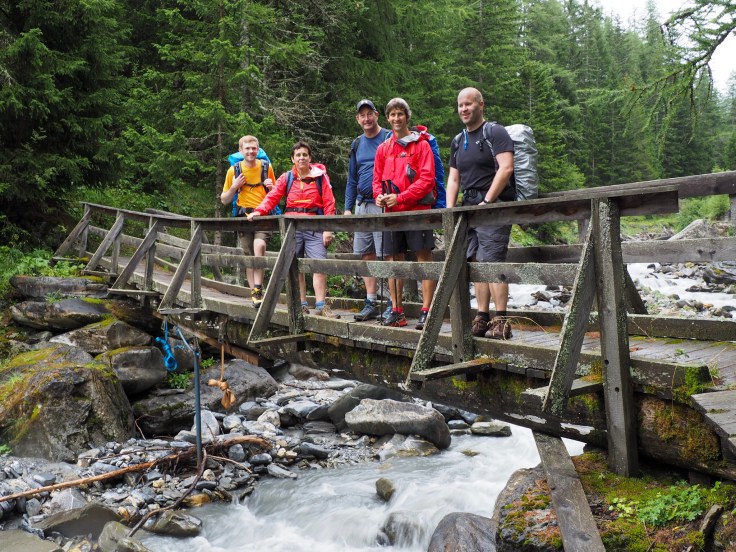 These posts on Tour du Mont Blanc are 11 days late because I couldn’t keep up with editing photos and writing blogs while we were trekking. It’s all over now, and we’ve had some adventures… mostly good, but a couple of bad. I think I can conclude that we’ve all enjoyed the challenge, the company, the laughs, and the spectacular scenery, but are also all glad to be returning to normality… no more rising early to hike up high cols, wearing sweaty trainers, smothered in sun protection cream, carrying heavy rucksacks in hot sun or rain, or staying in refuges in dormitories, sharing bathrooms, living out of one pack, and having no meal choices. John and I are pleased to be reunited with Bertie, our little home away from home.
