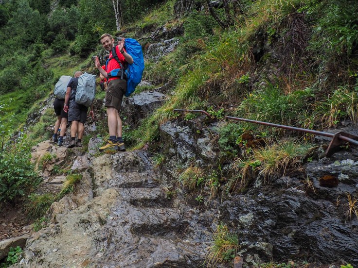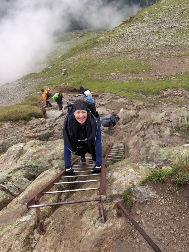 My poncho was flapping around in the wind, which was annoying, but at least it kept me warm and dry. After a short time, we came to a section of downhill ladders. I tucked the poncho into my rucksack waistband to keep in out of the way and quite enjoyed the ladder descent.