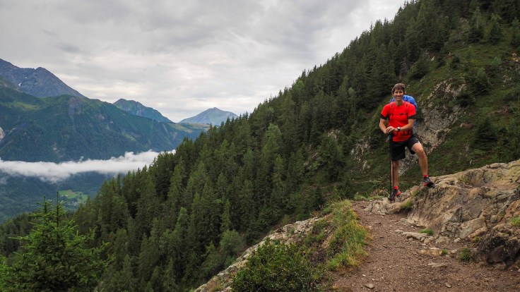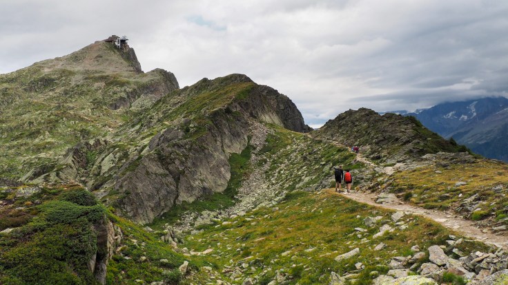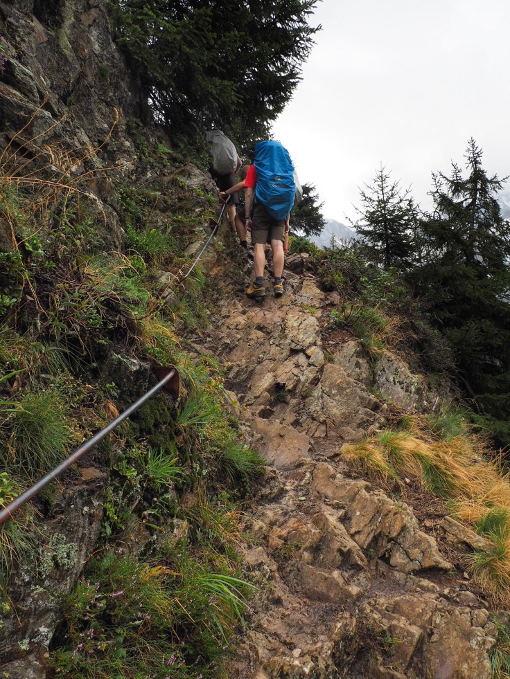 Then it was hands and poles needed for the rocky scramble down to the Plan Praz cable car station. We had to change our original plans because, unfortunately, the La Flegere refuge and cable car have closed for maintenance, but we got a cable car down to Chamonix and, after a bit of a mooch around, caught the bus to our hotel in Les Praz… a trip we’d have to reverse the next morning to continue TMB. All in all, another good day, despite the weather.