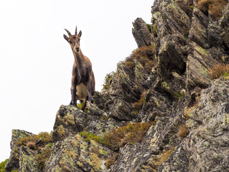 We stopped for a coffee at the Bellachat refuge before continuing the relentless climb to the top. The trail became rockier and the weather started closing in again. At least we saw an ibex!