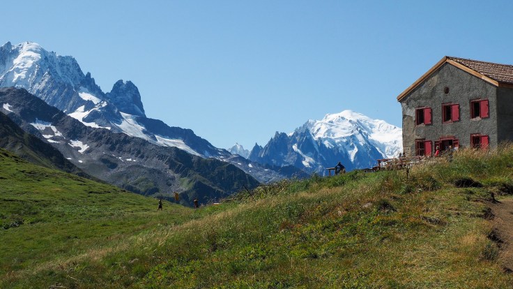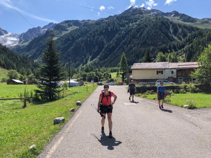 When we reached the refuge at the col, we stopped for a quick coffee and the guardian kindly arranged for a taxi to meet Mark In 2 hours at the auberge we’re staying at in Trient. Given the circumstances, the descent seemed long. That said, the views were beautiful. Finally, we reached the auberge and, half an hour later, the taxi arrived on time at 2 o’clock.