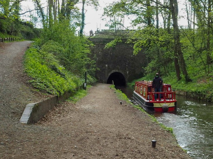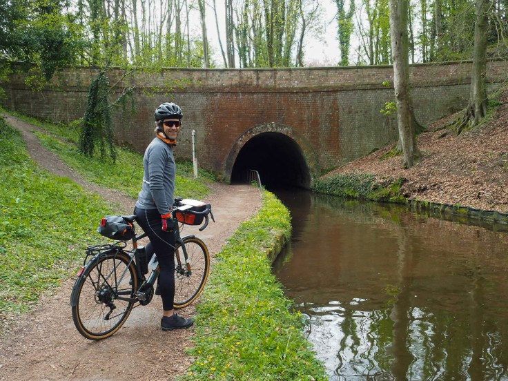 Further along the canal, we dismounted again to go through the Whitehouses Tunnel. It felt rather strange manoeuvring our bikes alongside the canal… very dark and disorientating. Then we realised we had our sunglasses on, took them off and it became easier!