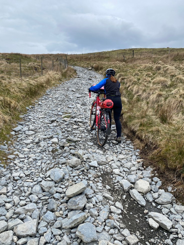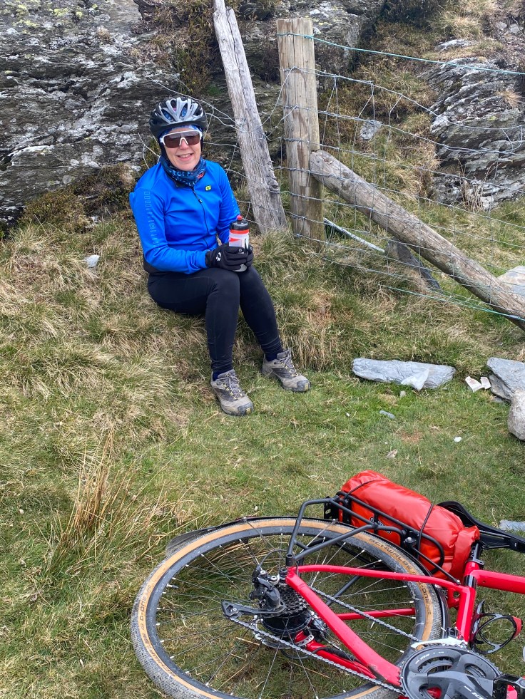 75 kilometres (46 miles) and over 1200 metres of ascent (more than Snowdon!), including 3-4 kilometre (2 miles) pushing our bikes. What an achievement! Now we’re looking forward to a ride home in wind and rain tomorrow 😂