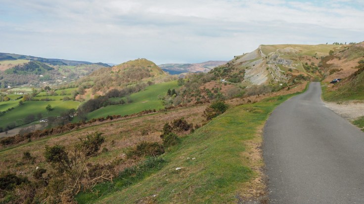 After leaving Llangollen, we turned off steeply uphill, on to the Panorama road, contouring the hillside past Castell Dinas Bran. The views were over the valley were beautiful and the sun kept peaking out from behind the clouds. This is the life!