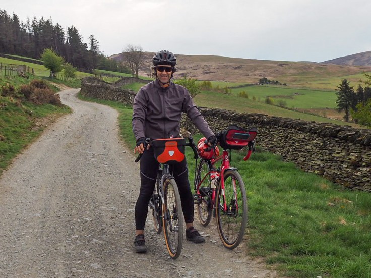 We got on and off our bikes a couple of times, as the track got worse and worse. It had obviously been used by off road motorcycles and 4x4s, and the track was rutted and rocky. It wasn’t a gravel track, which is what we’d expected. Next we reached a couple of sections of flooded track. John had to carry our bikes around one particularly wet and boggy section! ‘I’m glad you picked this route, not me!’, he said!