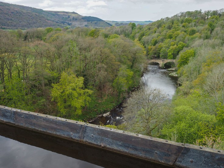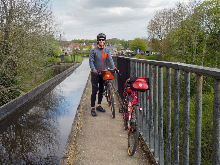 Next came a steep descent down to Trevor Basin on the Llangollen Canal. We got off our bikes to cross the Pontcysyllte Aqueduct, high above the RIver Dee. We’ve hiked it, kayaked it, packrafted it and now cycled it 😊