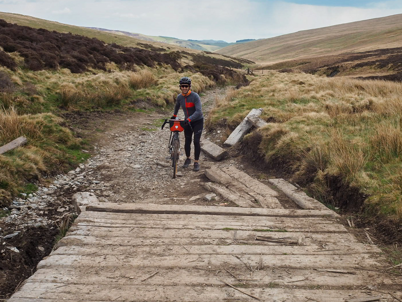 At one point I saw some board walk ahead. ‘Fanatstic!’, I thought. ‘Now we’ll make some progress.’ No such luck. Immediately it was battered and broken. This was turning into an assault course with new obstacles at every turn! Still I stayed strong and carried on pushing my bike, although shoulders were starting to ache by now.