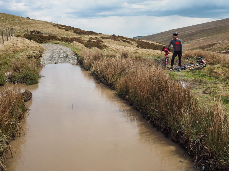 An easy section came next and we made good progress along a nice smooth tarmac road. Even when the road started to climb, we still found it relatively easy. Then the road turned into a track and started climbing more steeply into the Berwyn Mountains until we came to a ‘road closed’ sign… oh no! We’d come too far to turn round!