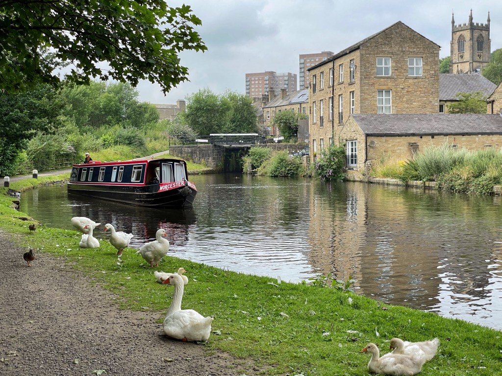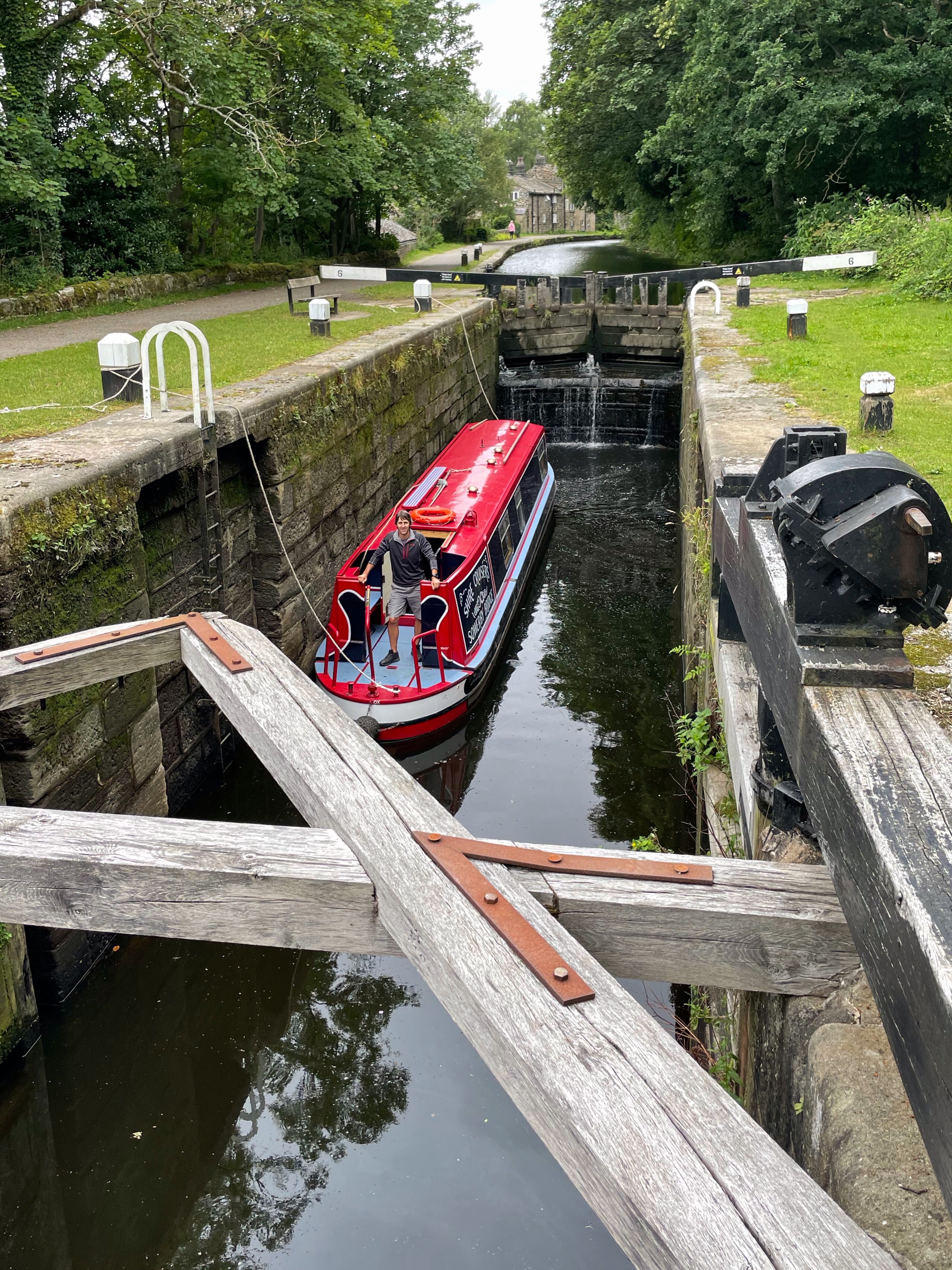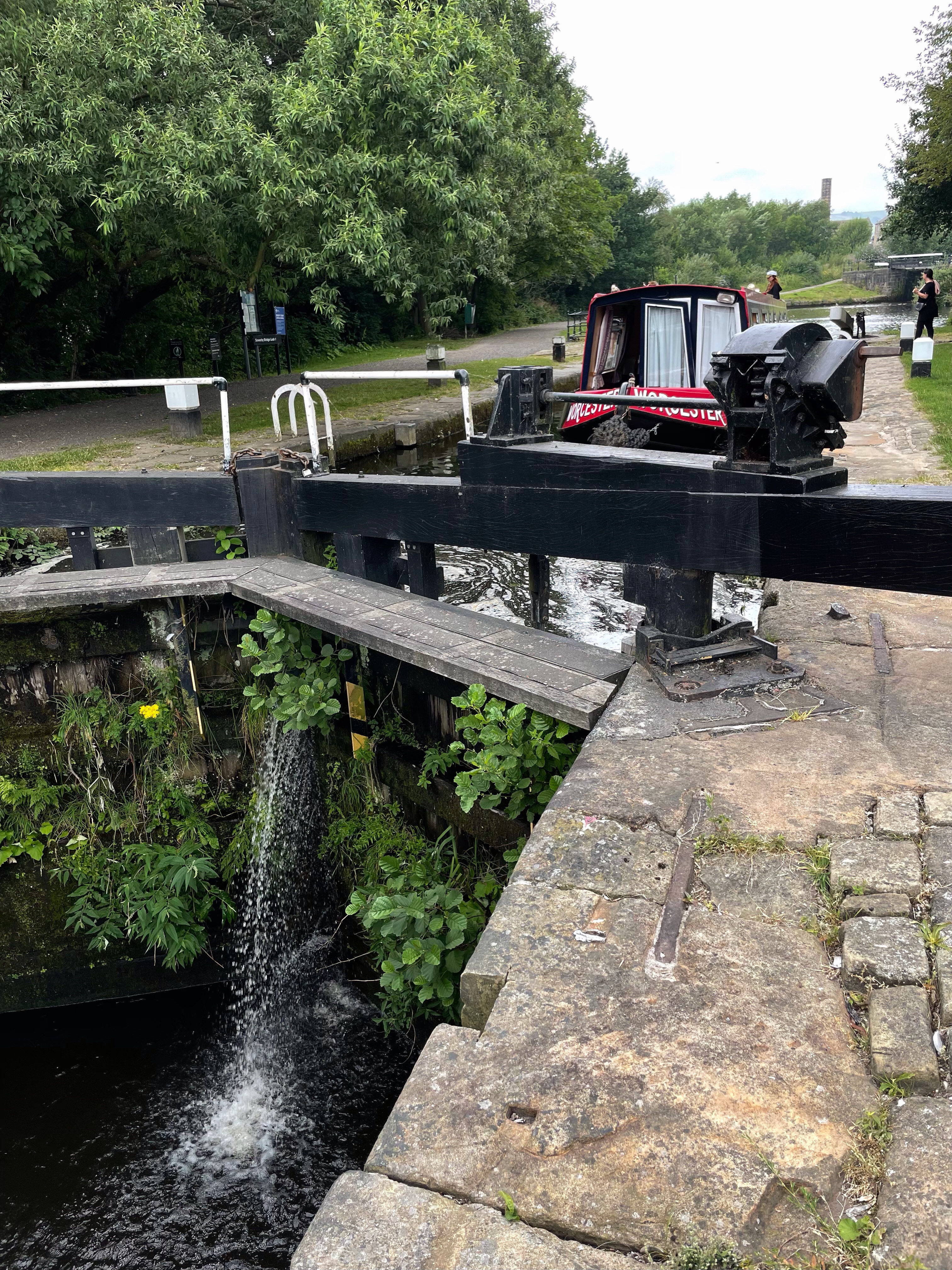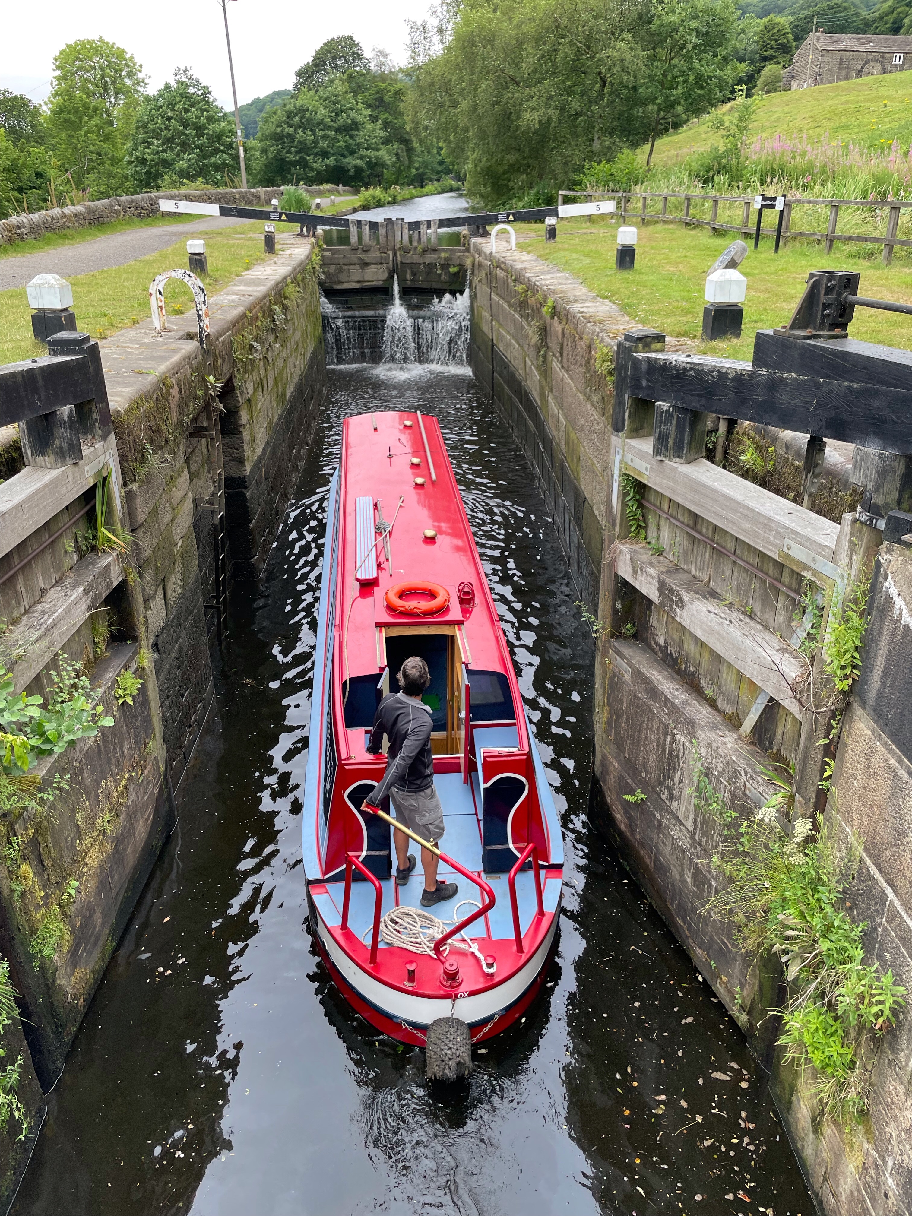 After doing two locks close together under the lock keeper’s guidance, I was much happier to go it alone. We only had two more locks before Hebden Bridge, one on our own and one as a pair, and we managed them well. In Hebden Bridge we moored up because we were meeting family for a meal that evening.